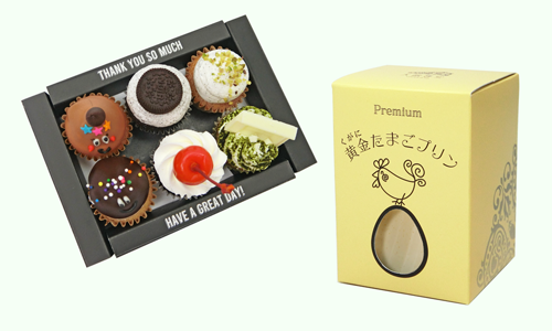 箱もケーキにふさわしいよう、*マットPPに*箔押しで高級感を出しています。
