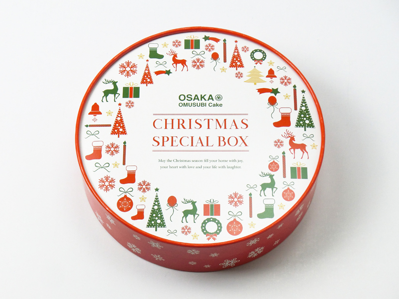 こちらは12月・クリスマスシーズンに合わせたパッケージ事例です。 中に、”OMUSUBI cake” 6個を入れてご使用いただいておりました。
