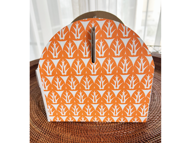 白ライナーにオレンジインクでの図柄も非常にきれいに印刷され、洋菓子のケースを思わせるような製品となりました。